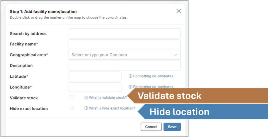 9. Hide exact location: you can choose to hide the exact location of your facility on the stock mapping (for example, for security reasons).