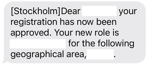 You will receive confirmation via email and SMS once you have been granted access. The notification confirms your role and the geographical area that you have been granted access to.